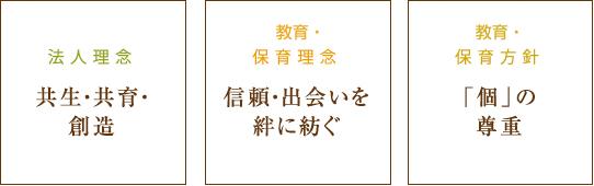 出会いのひとつひとつを絆に紡ぎ、自己を高め、共に生きようとする子どもの生育を尊重することから始めます。そして、唯一無二の「生命」を輝いて生きて欲しいと、願っています。